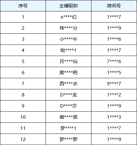 【封禁主播及房间号】