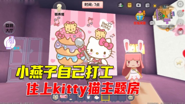 迷你世界:小燕子来到五星级酒店,自己打工,住上kitty猫主题房